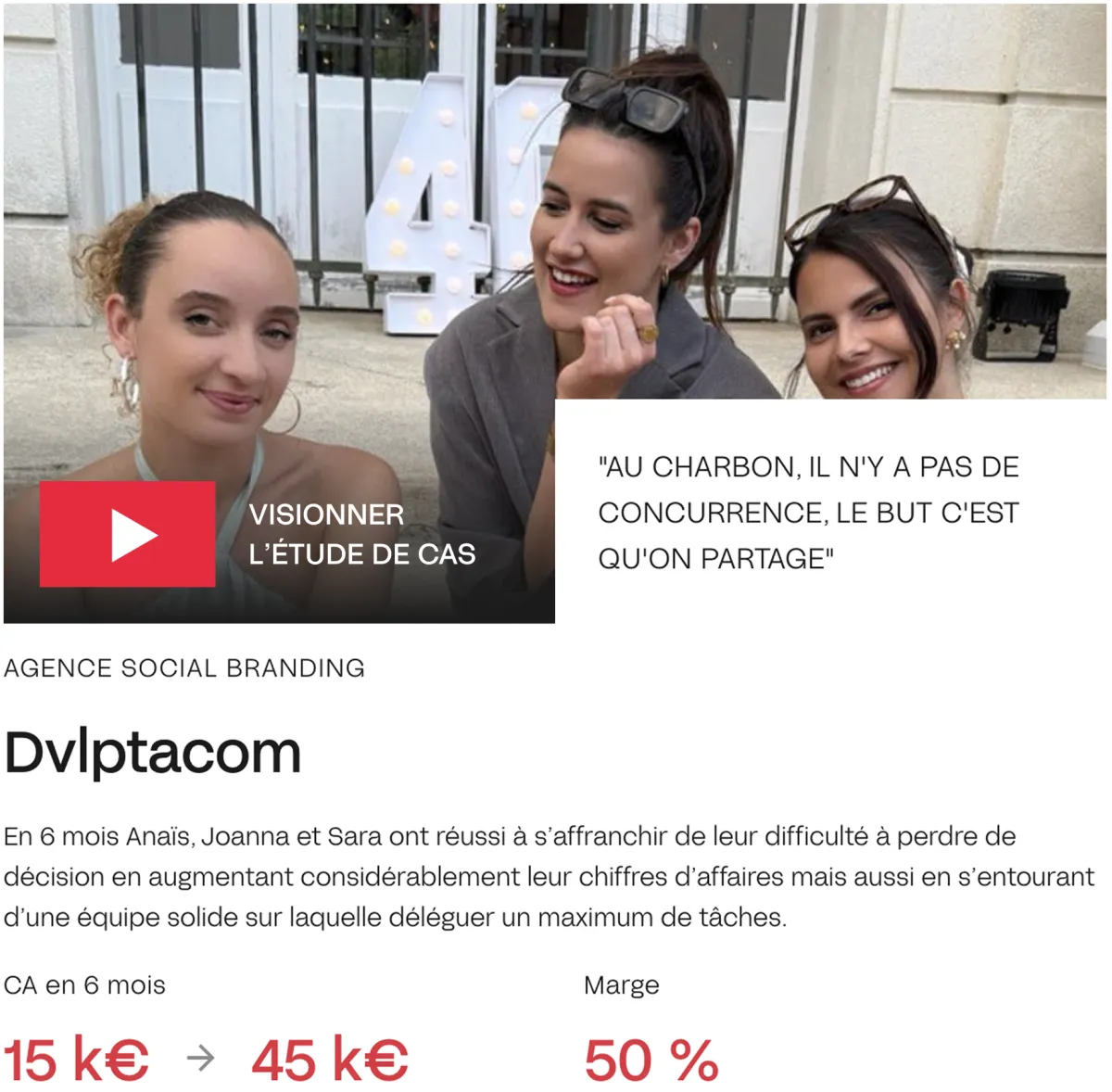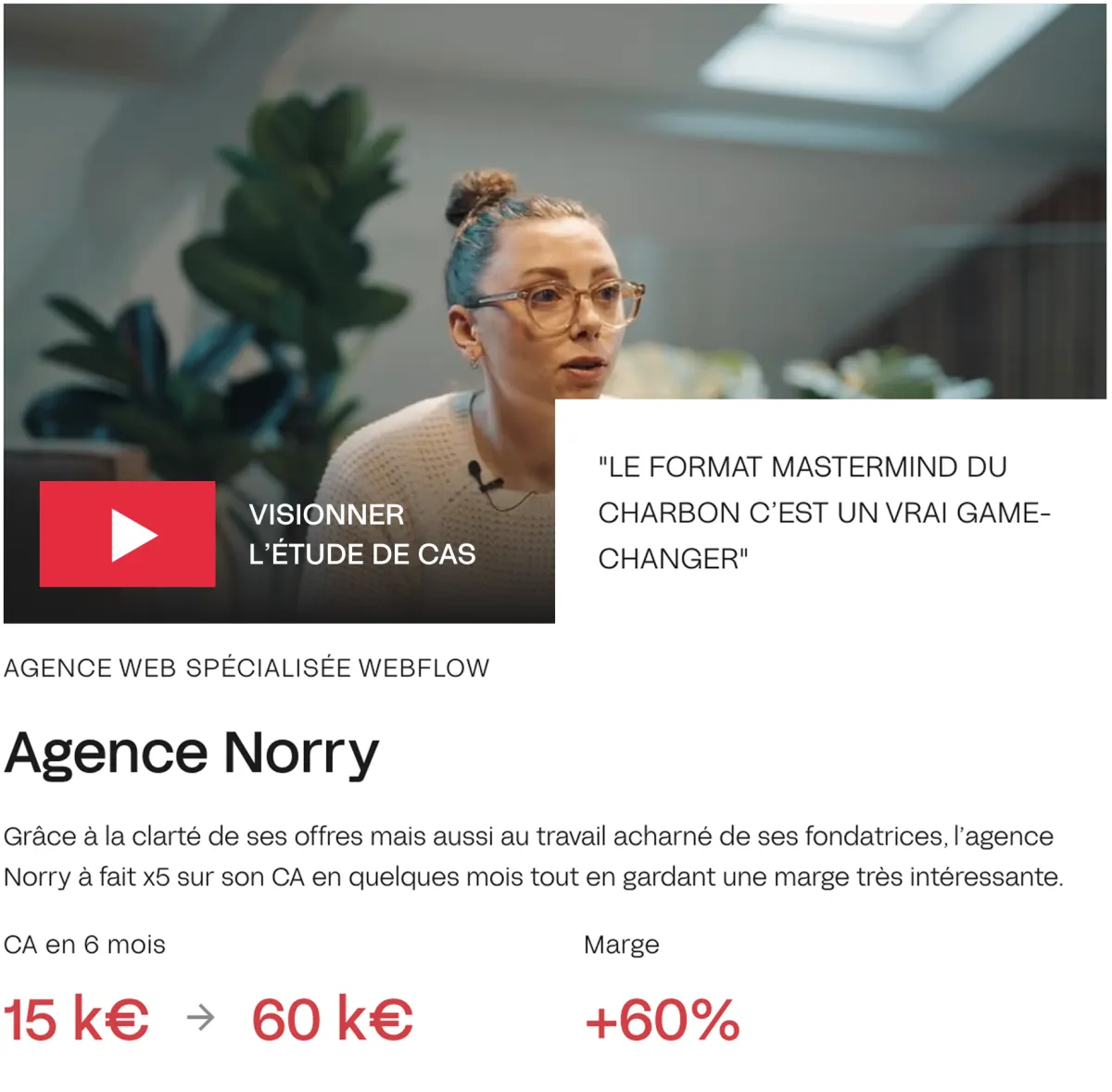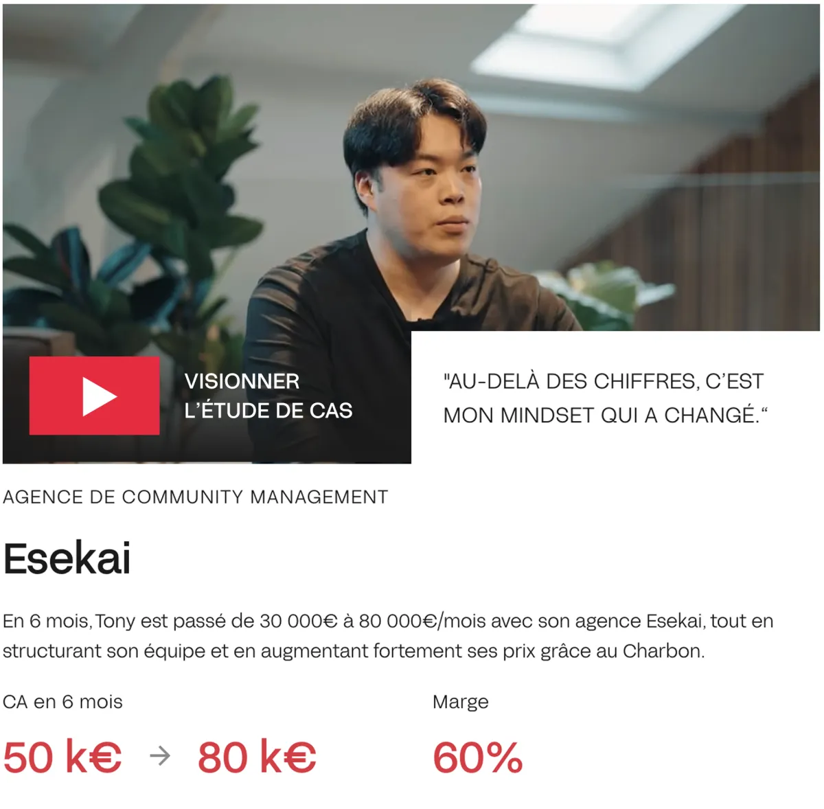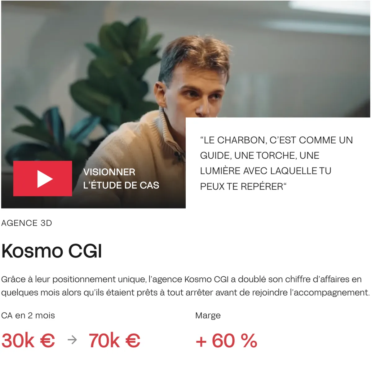 Avec +20 experts et +20 M€ de chiffre d’affaires généré pour les agences accompagnées, Le Charbon est devenu un écosystème de référence pour les fondateurs d’agences ambitieux.